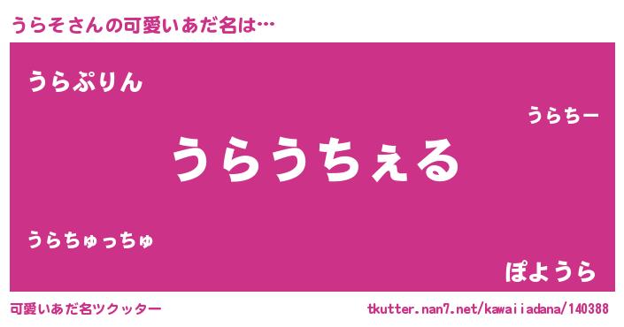 | 女子向けラノベタイトル風あだ名 | 『闇のうらそ』『うらその玉の輿計画!』 |