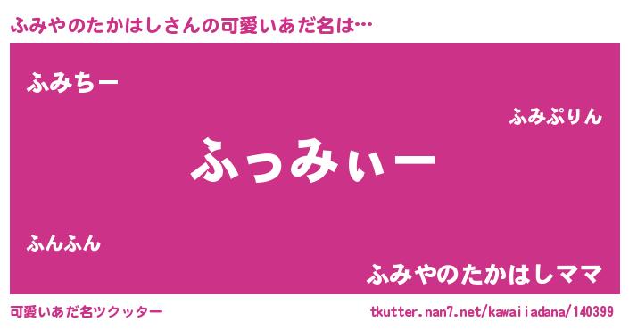 | ポケモン風あだ名 | 『ヒフミヤノタカハシ』『フミヤダネ』 |
