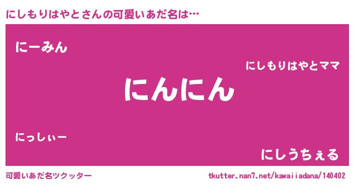 | 恥ずかしいあだ名 | 『プリティーにしもりはやと』『にしちん』 |