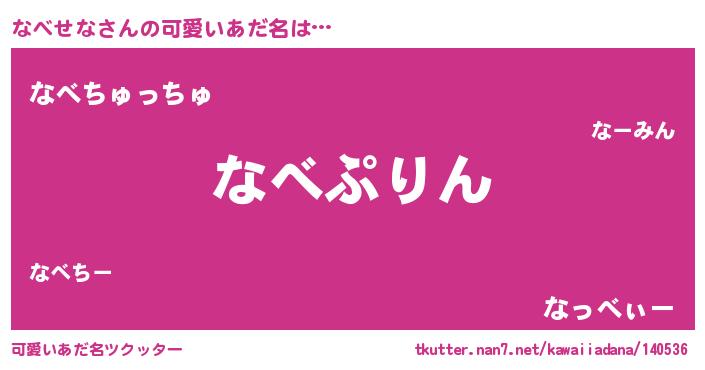 | ヒーロー風カッコイイあだ名 | 『慈愛の使者なべせな』『炎刃騎士ナベ』 |