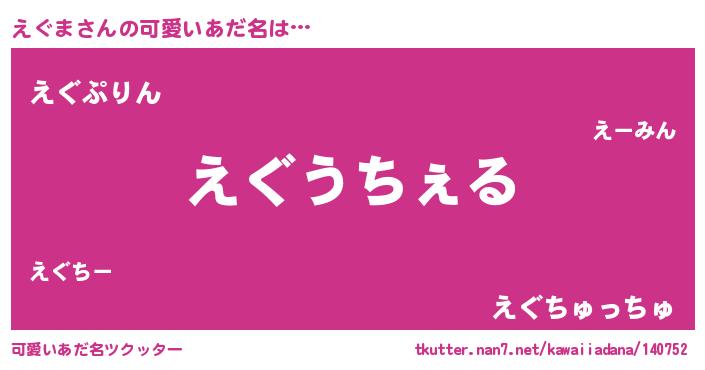 | ヒーロー風カッコイイあだ名 | 『超時空戦士エグマ』『正義の使者えぐま』 |