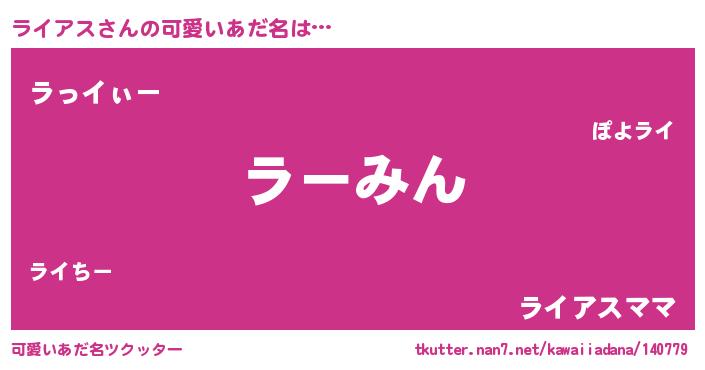 | ヘコむあだ名 | 『ライぷりん』『ライアス(笑)』 |