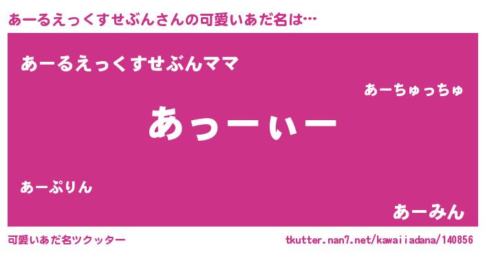 | 欧米人風あだ名 | 『アンジェラ・あーるえっくすせぶん』 |