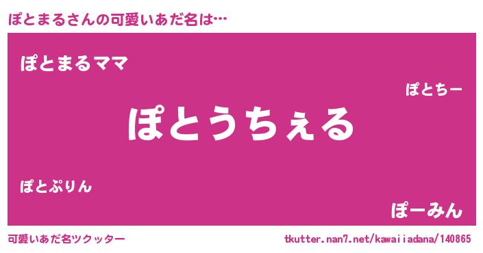 | 男性向けラノベタイトル風あだ名 | 『Re:ぽとまるから始める異世界生活』 |