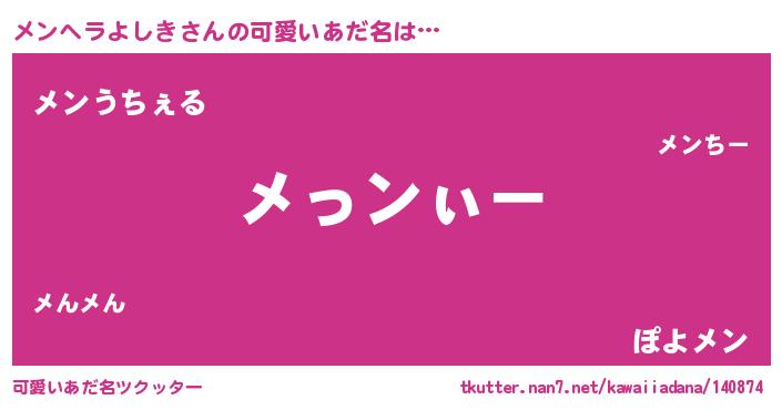| ヘコむあだ名 | 『メンお』『豆乳』『メンっふぃ~』 |