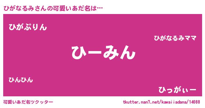 | 意味不明あだ名 | 『めかぶ科ひがなるみ属』 |