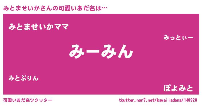 | 意味不明あだ名 | 『永久保存みとませいか』 |