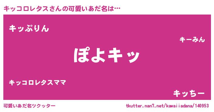 | 男性向けラノベタイトル風あだ名 | 『この素晴らしい世界にキッコロレタスを!』 |