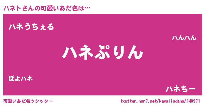 | ヒーロー風カッコイイあだ名 | 『最強戦士ハネト』『ウルトラハネトマン』 |