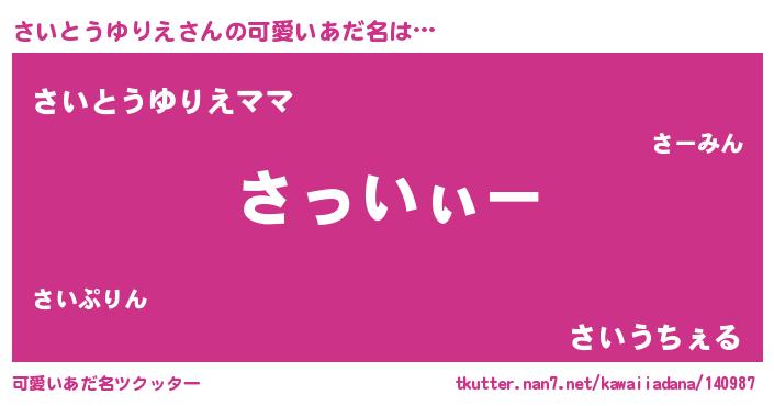 | ヘコむあだ名 | 『さいっちょ』『さいとうゆりえ(笑)』 |