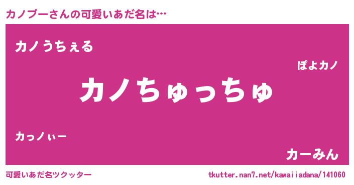 | 女子向けラノベタイトル風あだ名 | 『カノプー恋絵巻』 |