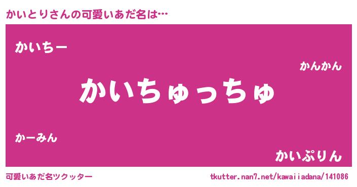 | ヘコむあだ名 | 『豆乳』『かいもー』『かいとり(爆)』 |