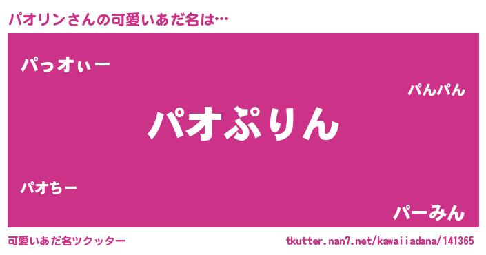 | 男性向けラノベタイトル風あだ名 | 『パオリン~年齢イコール彼女いない歴の魔法使い~』 |