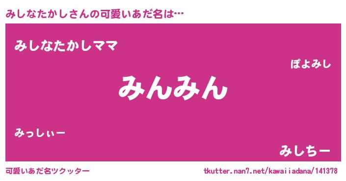| ヘコむあだ名 | 『みしふぇ~』『みしなたかし(笑)』 |