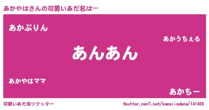 | 2回繰り返すあだ名 | 『あかあか』『るんるん』『ああかか』 |