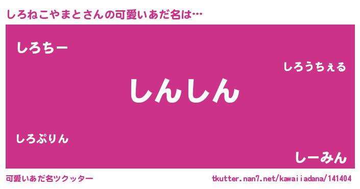 | 恥ずかしいあだ名 | 『プリティーしろねこやまと』『しろちん』 |