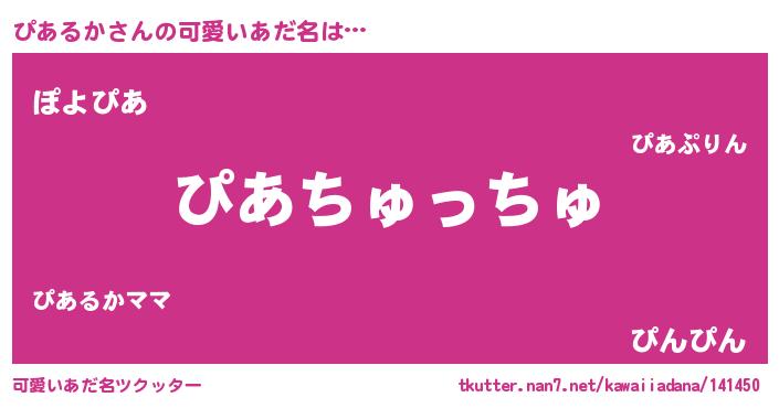 | ヘコむあだ名 | 『ぴあにゅー』『ぴあるか(震え声)』 |