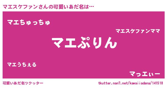 | 女子向けラノベタイトル風あだ名 | 『マエスケファンの玉の輿計画!』 |