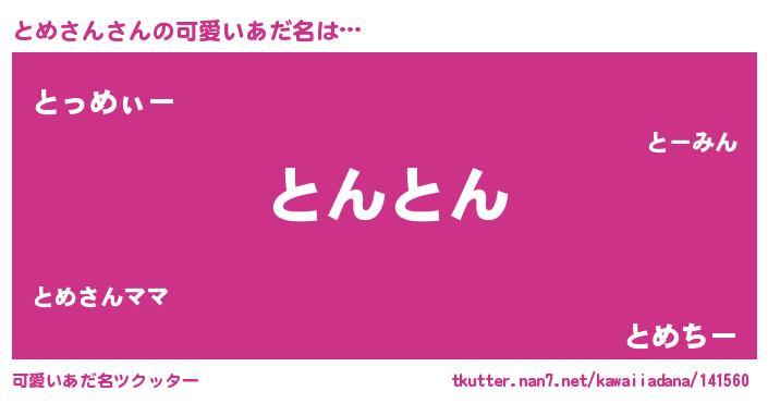 | 意味不明あだ名 | 『ペロリンとめさん』『永久保存とめさん』 |
