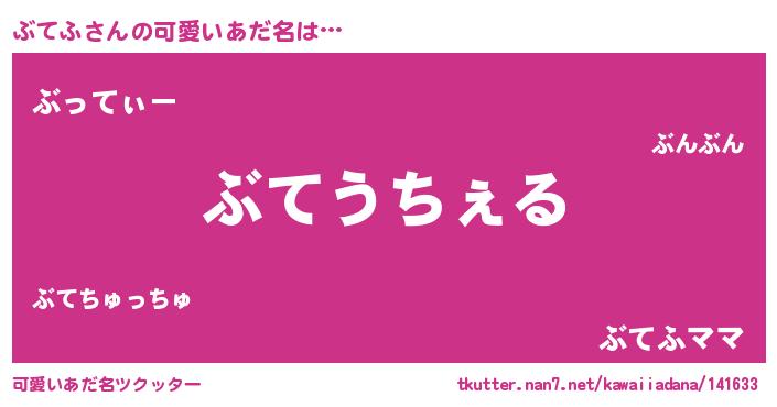 | 男性向けラノベタイトル風あだ名 | 『Re:ぶてふから始める異世界生活』 |