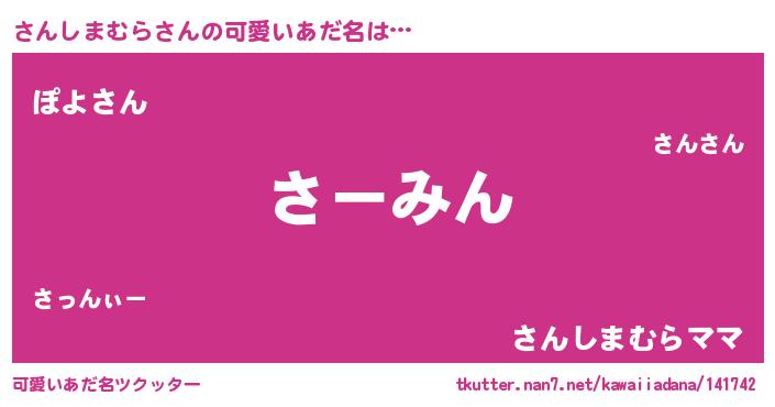| ヘコむあだ名 | 『さんしまむら(苦笑)』『さんふぇ~』 |