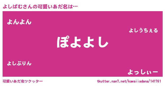 | 男性向けラノベタイトル風あだ名 | 『この素晴らしい世界によしぱむを!』 |