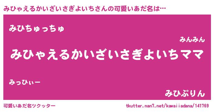 | 意味不明あだ名 | 『永久保存みひゃえるかいざいさぎよいち』 |