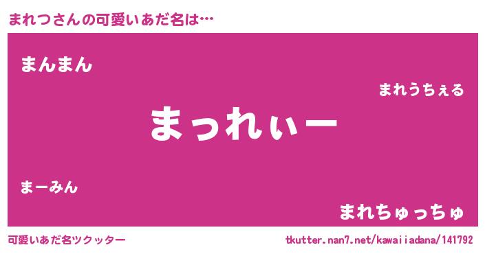 | 恥ずかしいあだ名 | 『マレリンリン』『プリティーまれつ』 |