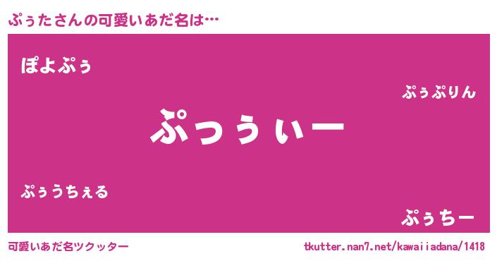 | 胡散臭い通販商品みたいなあだ名 | 『信頼と実績のサプリメント…その名も「ぷぅた」』 |
