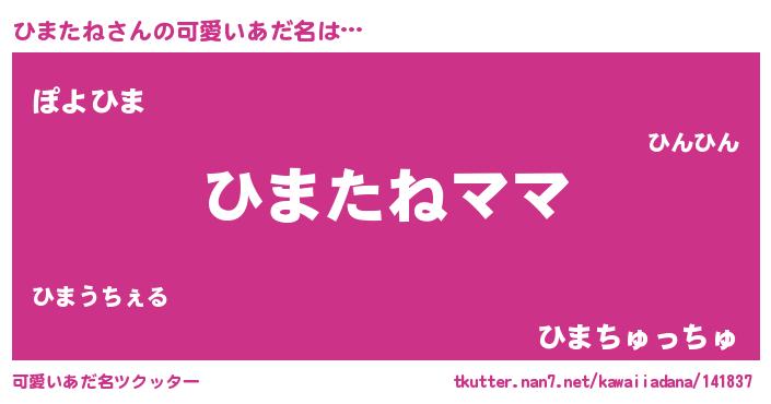 | ヘコむあだ名 | 『ひまたね(遠い目)』『ひまにゅー』 |