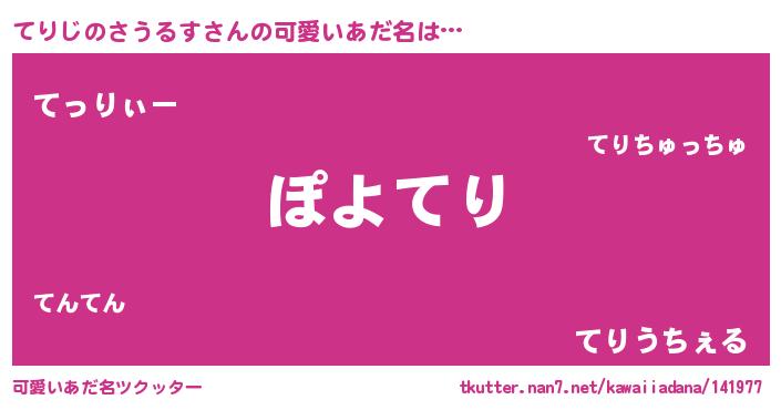 | 意味不明あだ名 | 『住所不定無職てりじのさうるす(10歳)』 |