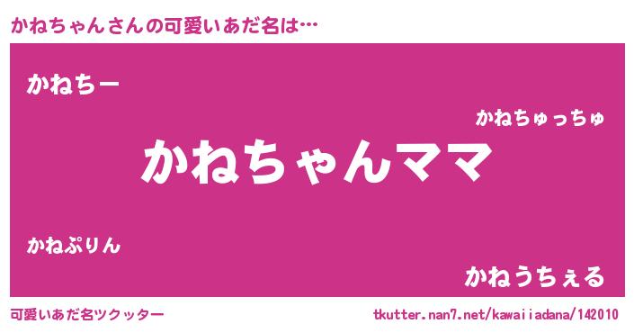 | 男性向けラノベタイトル風あだ名 | 『かねちゃんという概念が存在しない退屈な世界 』 |
