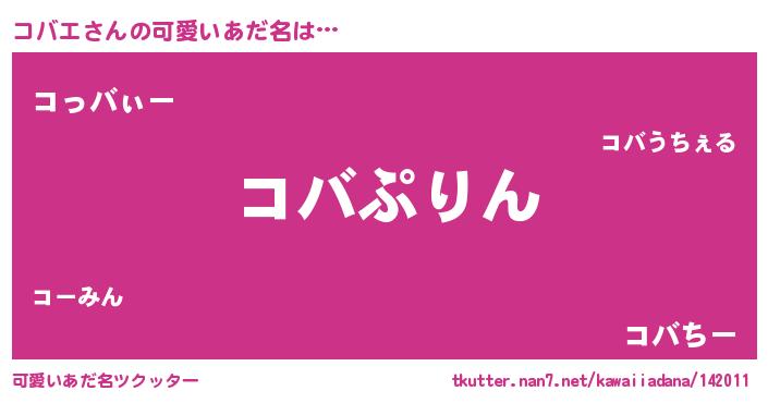 | ヒーロー風カッコイイあだ名 | 『魔戒騎士コバ』『ウルトラコバエマン』 |