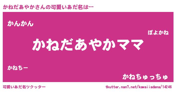 | 意味不明あだ名 | 『永久保存かねだあやか』 |
