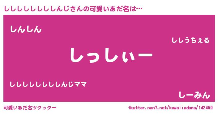 | 胡散臭い通販商品みたいなあだ名 | 『信頼と実績のサプリメント…その名も「ししししししししんじ」』 |