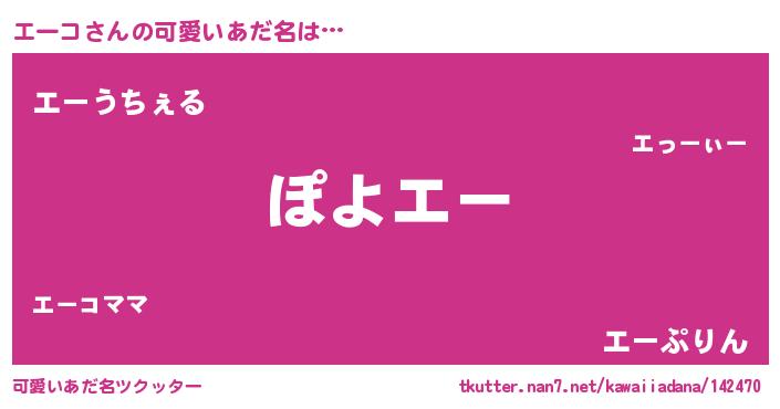 | 男性向けラノベタイトル風あだ名 | 『この素晴らしい世界にエーコを!』 |