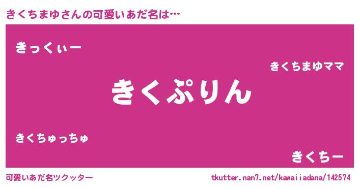 | 女子向けラノベタイトル風あだ名 | 『きくちまゆの玉の輿計画!』 |