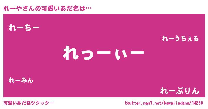 | ヘコむあだ名 | 『れーぷりん』『豆乳』 |