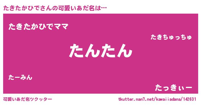 | 恥ずかしいあだ名 | 『プリティーたきたかひで』『たきちん』 |