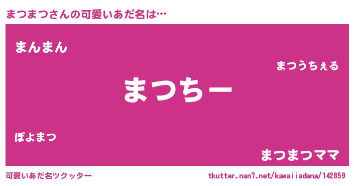 | 女子向けラノベタイトル風あだ名 | 『まつまつの雑貨屋さん』『闇のまつまつ』 |