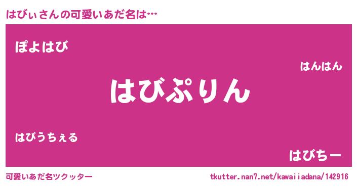 | 意味不明あだ名 | 『エリンギ科はびぃ属』『ペロリンはびぃ』 |