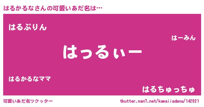 | 女子向けラノベタイトル風あだ名 | 『はるかるなの卵を拾いまして』 |