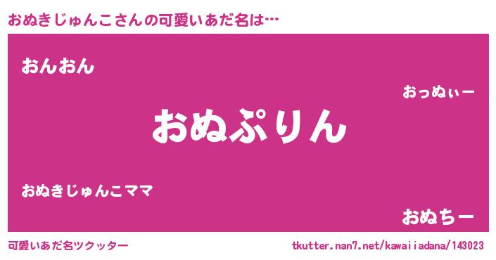 | 女子向けラノベタイトル風あだ名 | 『おぬきじゅんこの玉の輿計画!』 |