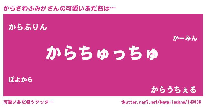 | 肩書あだ名 | 『からさわふみか教授』 |
