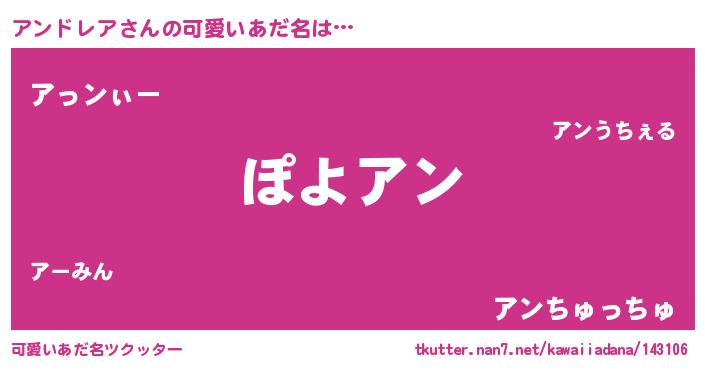 | ヘコむあだ名 | 『アンお』『アンドレア(笑)』 |