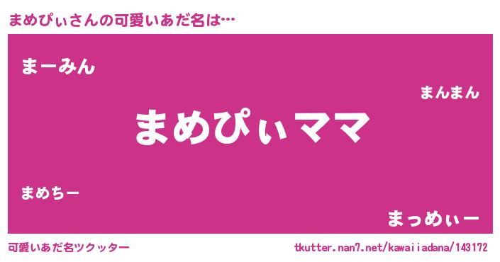 | ヒーロー風カッコイイあだ名 | 『ネオマメピィ』『魔戒騎士マメ』 |