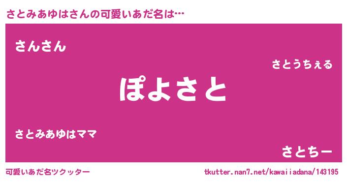 | 恥ずかしいあだ名 | 『プリティーさとみあゆは』『さとっちょ』 |