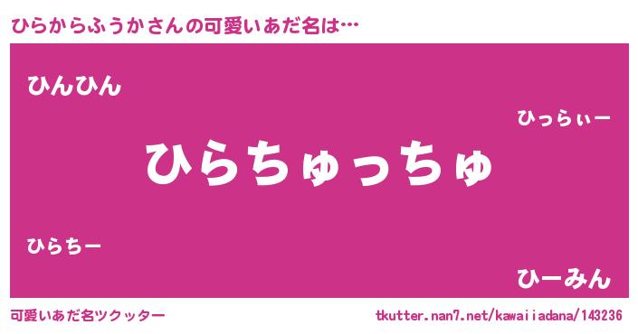 | 女子向けラノベタイトル風あだ名 | 『死神ひらからふうかの再婚』 |