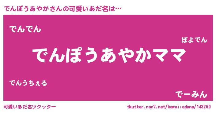 | ヘコむあだ名 | 『でんぽうあやか(笑)』『でんにー』 |