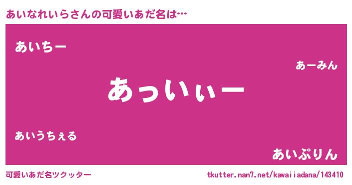 | 男性向けラノベタイトル風あだ名 | 『あいなれいらの嫁は女の子じゃないと思った?』 |